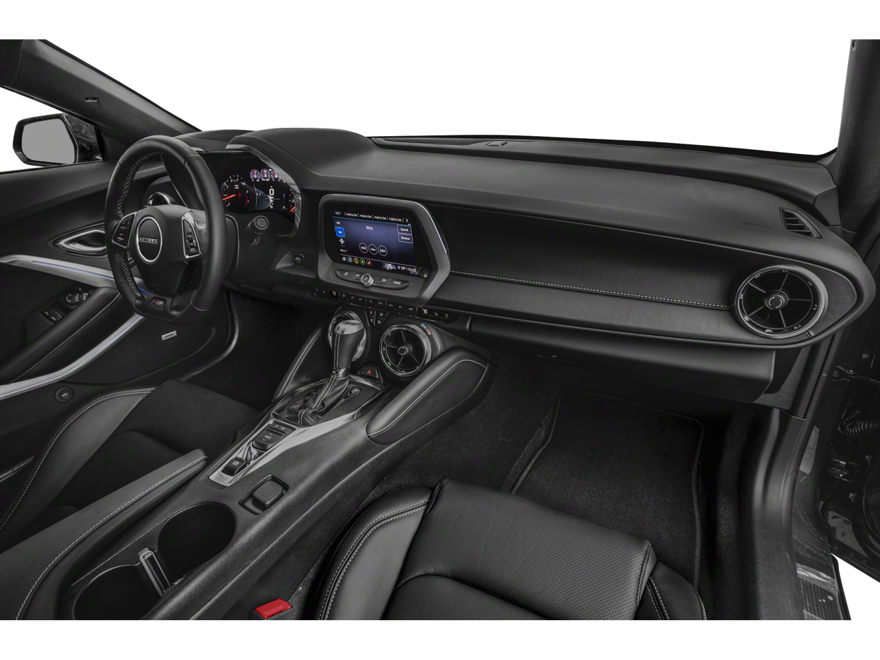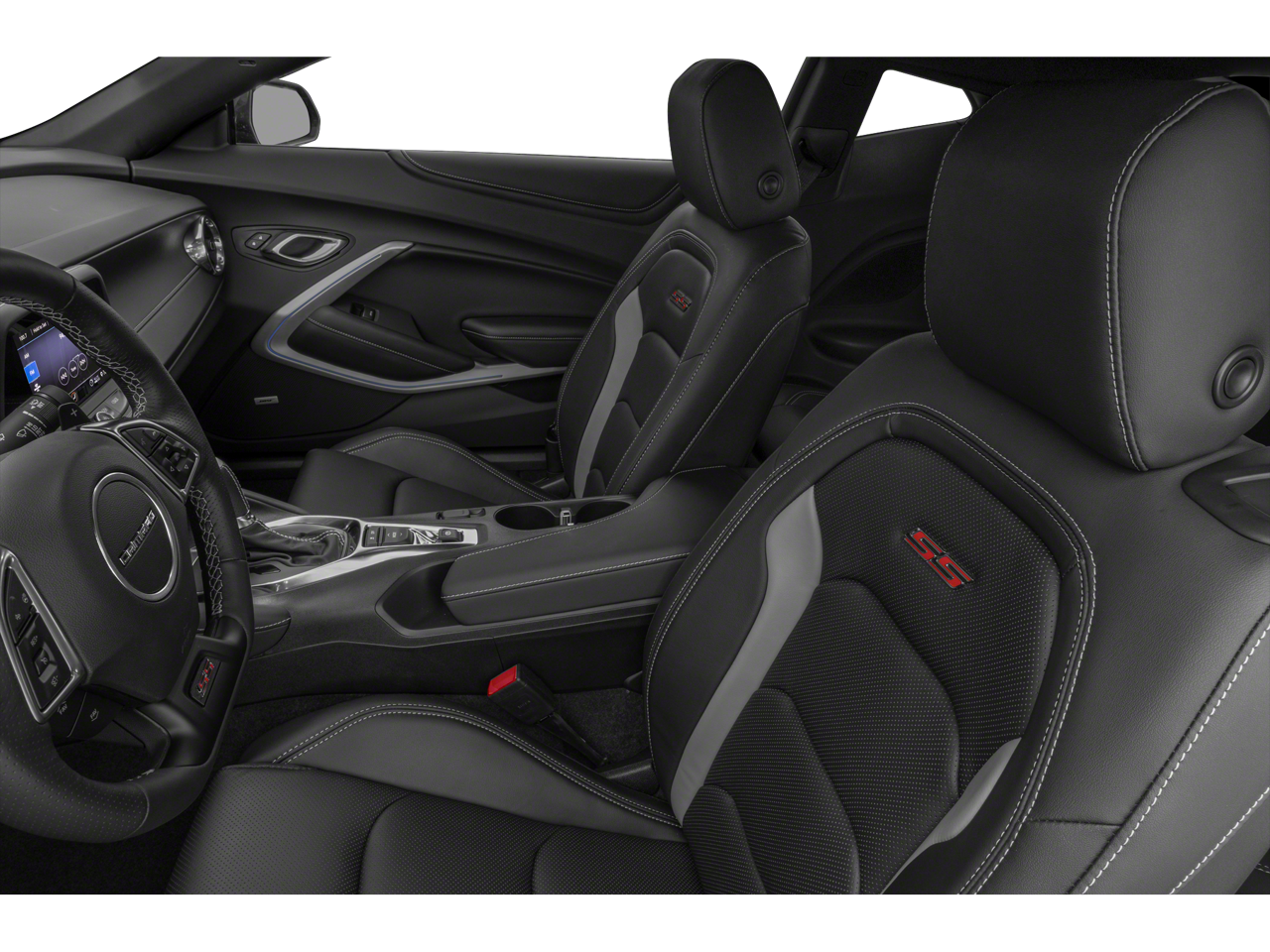 Step inside, and you'll be greeted by a spacious, well-appointed cabin that's both comfortable and driver-focused. The heated and ventilated front seats, along with the leather-wrapped steering wheel, provide a premium feel, while the Camaro-branded accents and illuminated sill plates add a touch of personalization.